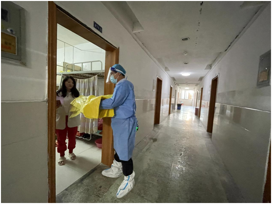 我需要兩個(gè)垃圾袋,我需要口罩,我需要……3000余名員工需求保障,他們“有求必應(yīng),有需必達(dá)”,成了園區(qū)公舍里的“宅急送”。他們每天爬樓上下,為每個(gè)房間送上垃圾袋,及時(shí)清理生活垃圾,每天微信步數(shù)都在20000以上。