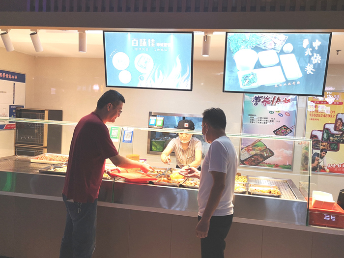 歷經(jīng)4個(gè)月,園區(qū)公舍東吳尚城美食城從“外觀面貌”到“運(yùn)營內(nèi)核”提升蛻變。9月29日,餐廳正式開餐,走進(jìn)美食城,一派全新景象映入眼簾,餐廳整潔溫馨,典雅大方,餐廳內(nèi)桌椅整齊有序,環(huán)境寬敞明凈,可同時(shí)容納300人就餐?!凹t燒獅子頭、紅燒雞、香菇青菜,兩葷一素只要15元錢。好吃、實(shí)惠又干凈?!本幼≡趫@區(qū)公舍18號(hào)樓的李女士為美食城點(diǎn)了一個(gè)大大的贊。