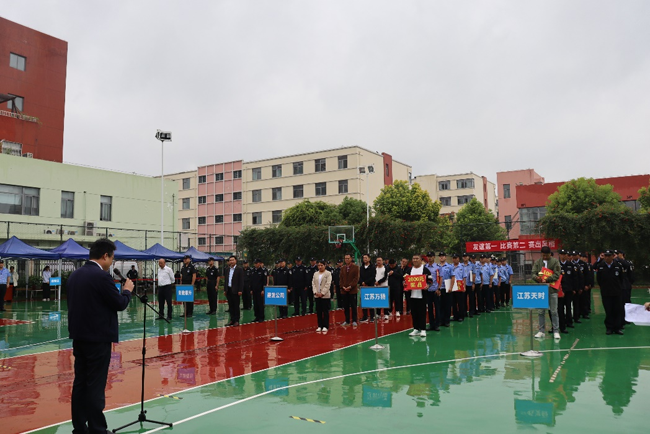 本次技能競賽科目分別是隊列展演、消防兩盤水帶連接、消防快速滅火操。隨著比賽“開始”口令的下達,四支隊伍共70名參賽隊員身著保安制服,以飽滿的精神、高昂的氣勢、整齊的步伐以及響亮的口號震撼亮相。稍息、立正、敬禮與禮畢、正步走、齊步走……他們用整齊劃一的動作、干凈利落的操作表演、扎實的軍事素養(yǎng),贏得了現(xiàn)場觀眾和評委的高度贊揚和肯定!最終江蘇萬楊保安服務(wù)有限公司和江蘇天時物業(yè)管理有限公司獲評團體第一名和第二名。