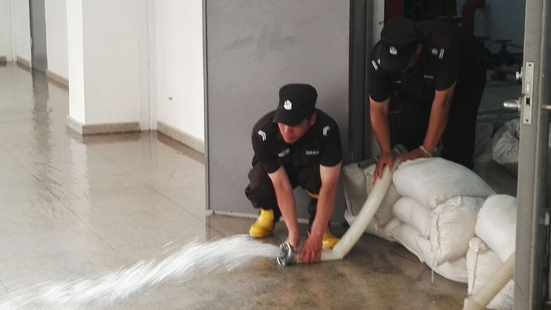 本次演練主要結(jié)合項(xiàng)目實(shí)際情況,在突發(fā)暴雨災(zāi)害發(fā)生時(shí),重點(diǎn)針對(duì)校園設(shè)備機(jī)房等重點(diǎn)區(qū)域,設(shè)置警戒,快速疏散現(xiàn)場(chǎng)人員及車(chē)輛,作利用防汛工具緊急排險(xiǎn),有效排除現(xiàn)場(chǎng)積水。