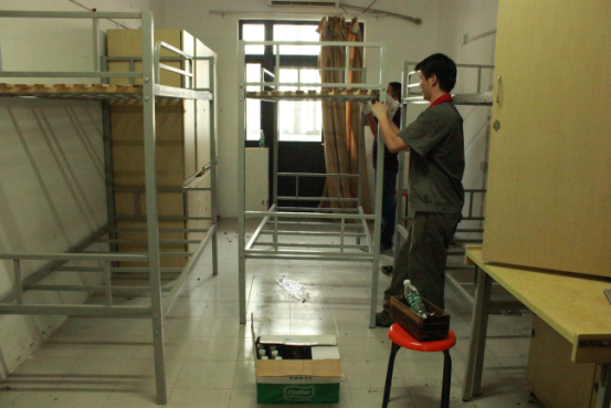 8月24日,處暑雖至,但氣異常悶,光是站著不動(dòng)就已經(jīng)大汗淋漓,而物業(yè)管理部的維修人員他們揮灑汗水,默默無聞地奮戰(zhàn)在一線,保障著園區(qū)公舍2號(hào)樓床鋪及時(shí)安裝完成。