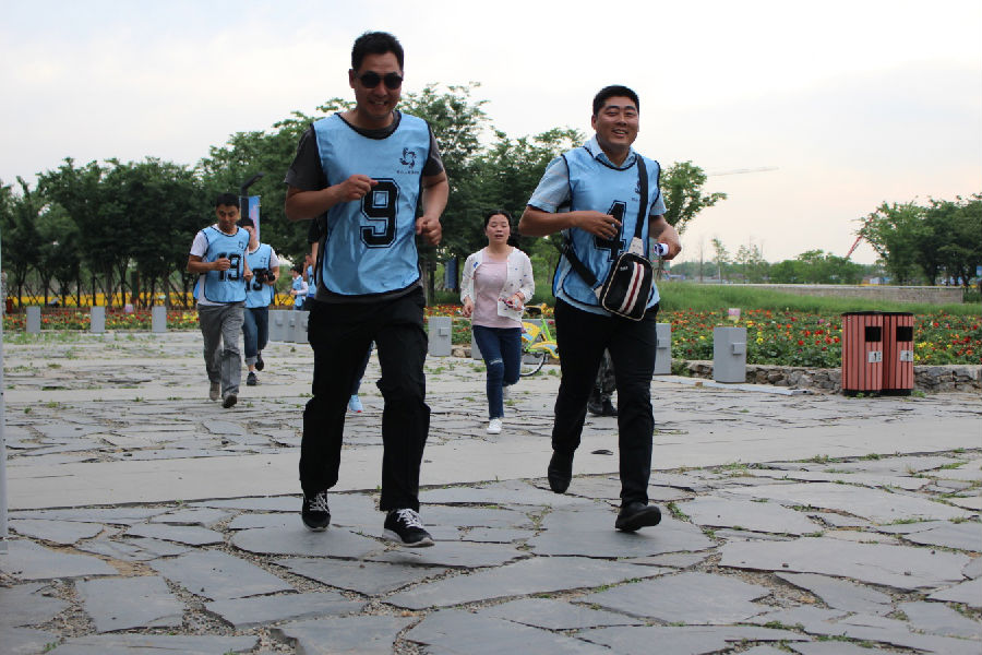 烈日炎炎,隨著“東方不敗、永遠(yuǎn)不敗”和 “屠龍隊(duì)、專(zhuān)治不敗”口號(hào)吶喊,兩支斗志昂揚(yáng)的隊(duì)伍踏上三臺(tái)山尋寶征途。在指導(dǎo)教官的監(jiān)督下,按照尋寶秘籍的指引,隊(duì)員們?nèi)翰呷毫Γ群笸瓿伞凹w跳躍合拍”、“征集十二個(gè)陌生人合影”、“募集五十元”等寓意深刻的團(tuán)隊(duì)合作任務(wù)。尋寶全程7公里,在到達(dá)終點(diǎn)前路程中,隊(duì)員們體能已經(jīng)達(dá)到極限,但沒(méi)有一個(gè)人掉隊(duì),大家相互扶持,沖刺到了終點(diǎn)。